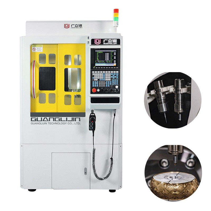 → Автоматически переключается между гравирующими инструментами, фрезерами, сверлами и головами полировки на одной и той же заготовке.гравировка рисунков, резка слотов, микробурение и отделка изогнутой поверхности. резко повышает эффективность производства сложных ювелирных изделий (например, кольцевые головки с бриллиантами, филигрированные подвески).